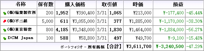 塩漬けの所有株が「不二越」以外全て前月比大幅下落してしまった_| ̄|○